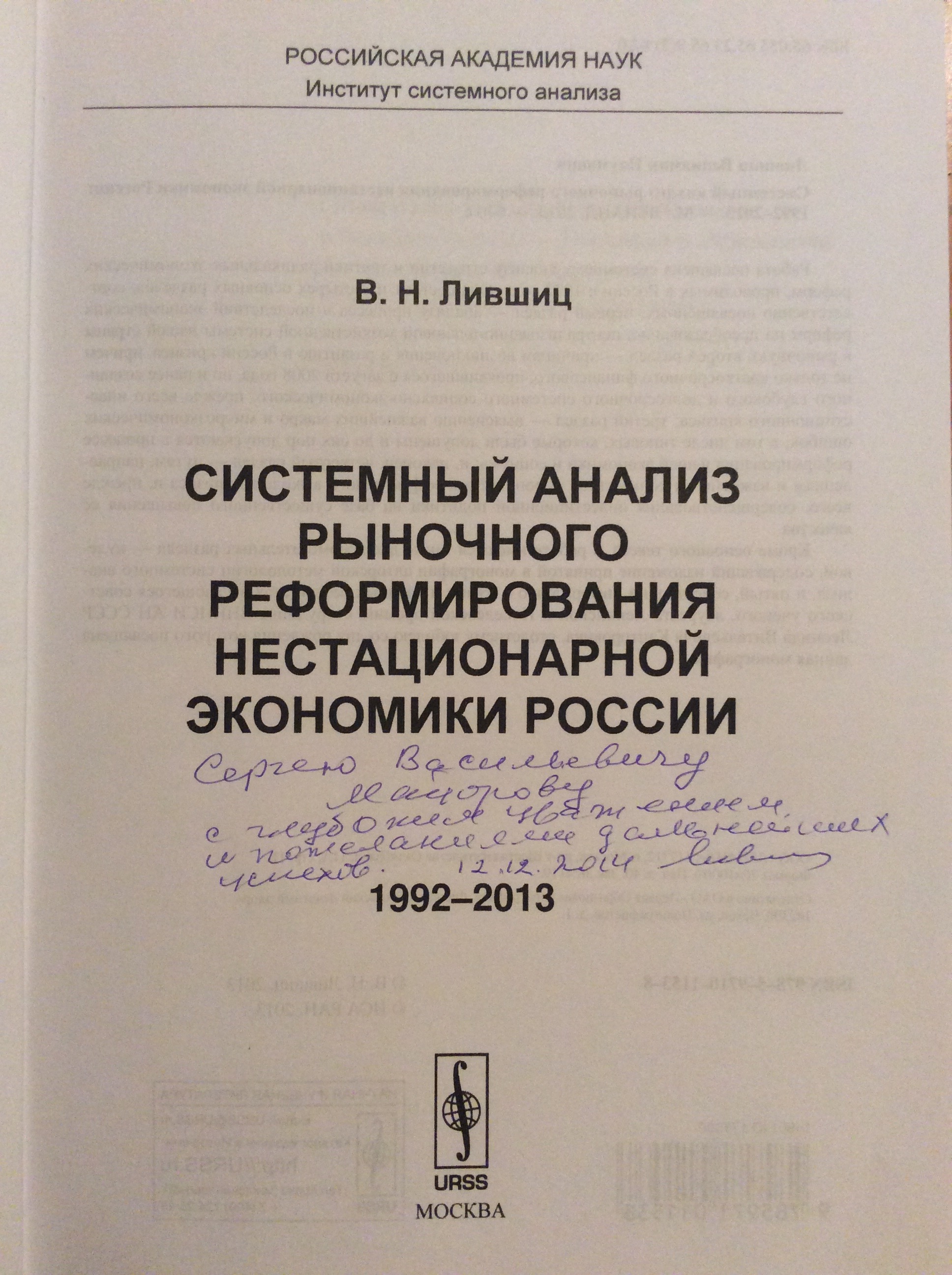Рецензия на книгу В.Н. Лившица «Системный анализ рыночного реформирования нестационарной экономики России: 1992-2013»