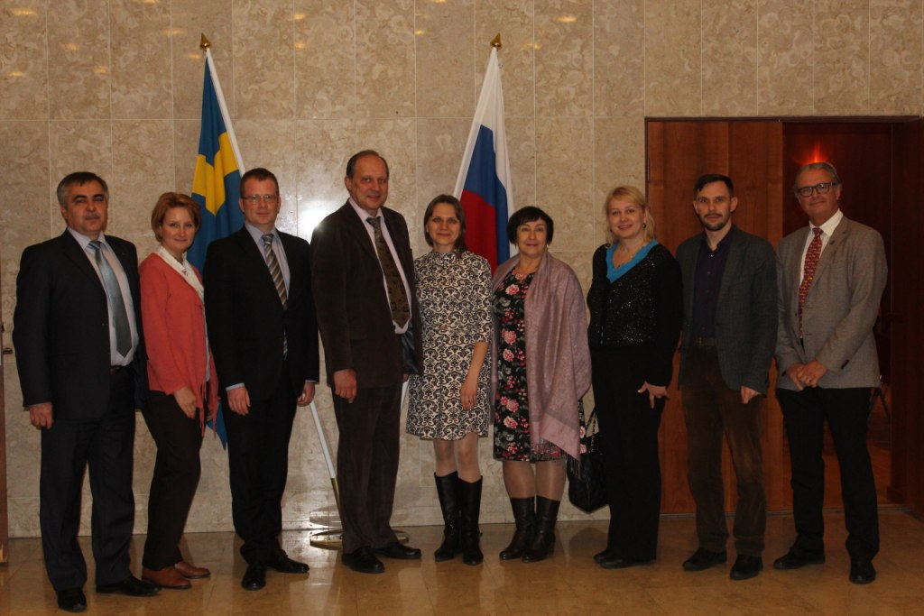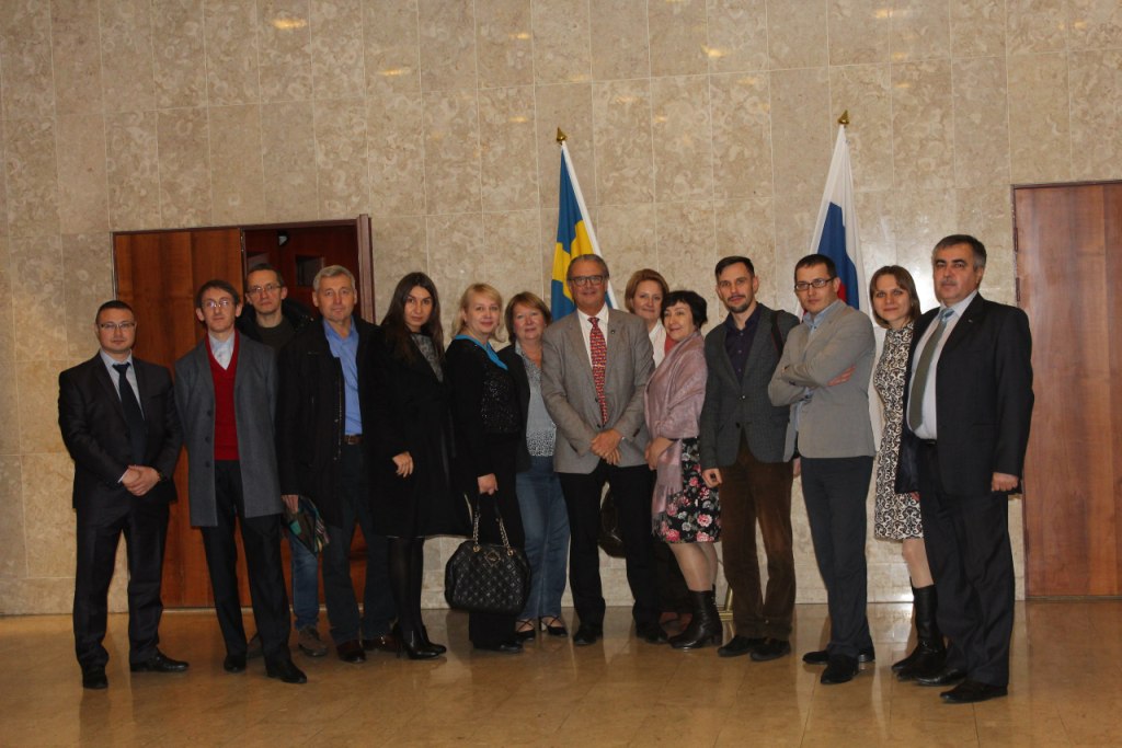 18 ноября делегация приняла участие в Круглом Столе с Ассоциацией машиностроителей Швеции в Торговом представительстве Российской Федерации в Королевстве Швеция. Во время встречи гостей поприветствовал Торговый Представитель Российской Федерации в Швеции – Александр Катасов: «От лица Торгового Представительства хотим пожелать успешного диалога. Теперь действительно видно, что Форум начался (прим. V Российско-Шведский инвестиционный форум). Это мероприятие будет обязательно нами отмечено во всех новостных сообщениях Торгпредства и Министерства экономического развития. От себя лично, желаю Вам успеха и сегодня, и завтра. Также на встрече заместителей и сопредседателей в МИД Швеции мы упомянули сегодняшнюю бизнес-миссию и отметили возможность продолжения сотрудничества в следующем году в сфере производства автокомпонентов. Поэтому будем действовать совместными усилиями». Также на встрече присутствовал Заместитель Председателя Российской части Российско-шведского Наблюдательного комитета по торговле и экономическому сотрудничеству – Егор Бронников: «Хочу от лица комитета поприветствовать и пожелать удачи в это непростое время. Особенно приятно видеть, что за столом практически нет свободных мест, тем более учитывая, что переговоры ведутся в такой высокотехнологичной отрасли. Нас это действительно радует. Мы со своей стороны готовы оказать любую поддержку, которая потребуется. Поэтому могу пожелать только успехов и удачи!».